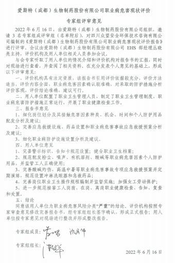 愛(ài)斯特(成都)生物制藥股份有限公司職業(yè)病危害現(xiàn)狀評(píng)價(jià) |