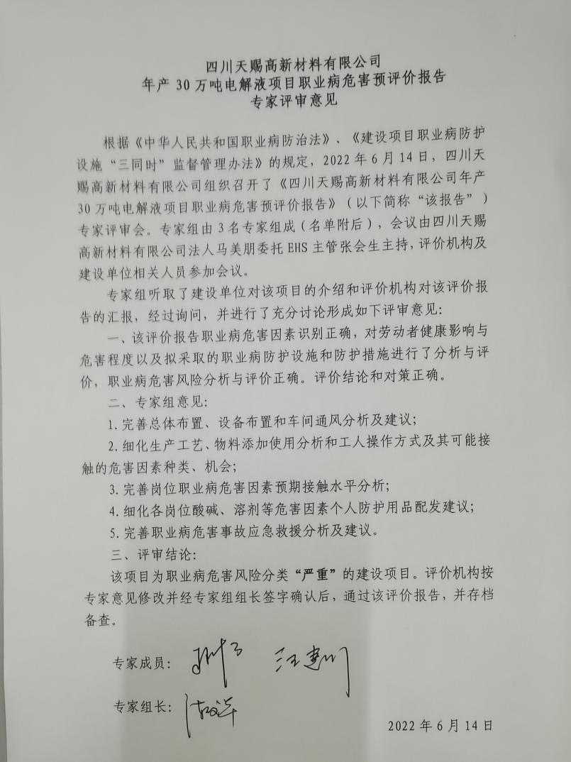 四川天賜高新材料有限公司 |